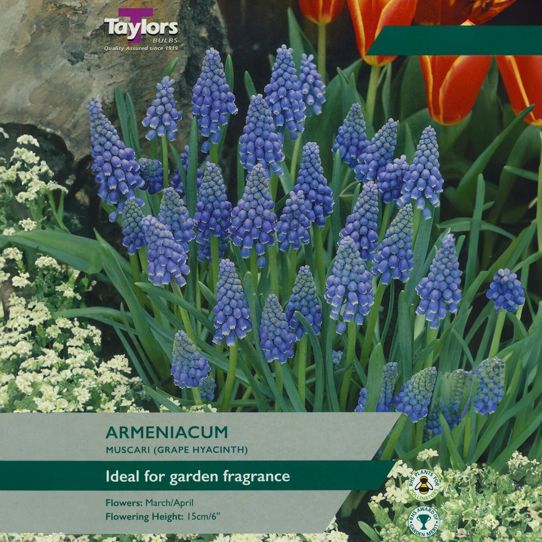 Plant your Muscari Armeniacum bulbs in autumn, about 8 cm deep and 8 cm apart in well-drained soil. They prefer full sun to partial shade and are fairly low-maintenance once established. Moderate watering during their growing season will keep them happy. Given their tendency to naturalise, they will expand and provide an increasingly impressive display with each passing year.