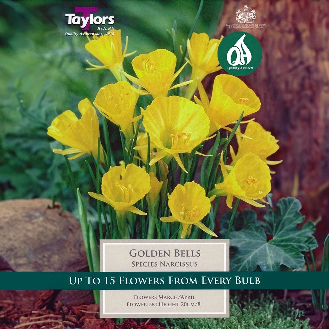 Indulge in the radiant glow of the Narcissus 'Golden Bells'. A true gem in the world of daffodils, each bulb unfurls to reveal striking golden-yellow blooms that shimmer in the spring sunlight. Aptly named, these 'Golden Bells' create an enchanting melody of colour in any garden setting. Their vibrant hues serve as an uplifting sight after a long winter, heralding the warmer days to come. Ideal for planting in borders, they can also be beautifully showcased in containers. To complement their vibrant shades, consider planting them amidst soft purples of lavender or the deep greens of ferns. Beyond their beauty, these daffodils play a pivotal role in drawing pollinators, adding life and movement to your garden.