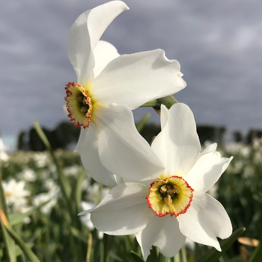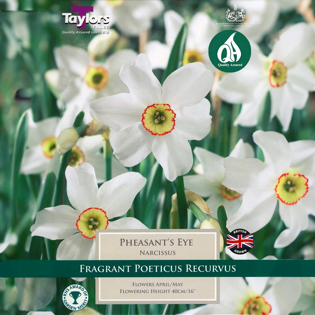 Narcissus 'Pheasant's Eye', with its poetic charm, is a testament to nature's artistry. The daffodil is adorned with pure white petals that form a stunning contrast to its captivating red central disc. Emitting a delightful fragrance, this variety is a late spring bloomer, often concluding the daffodil season with its ethereal beauty. Ideal for borders, rockeries, or under tree plantings, it shines brilliantly when intermingled with blues and purples of other spring flowers like bluebells. As a hardy perennial, 'Pheasant's Eye' not only naturalises with ease, ensuring years of recurrent beauty, but it's also resistant to the nibbling of deer and rabbits, making it a gardener's favourite.