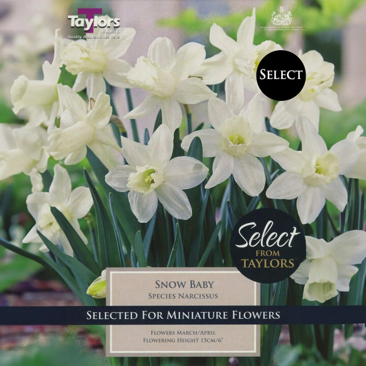 Nurturing the Narcissus 'Snow Baby' is a straightforward affair. If you're planting outdoors, select a spot with direct or partial sunlight where this dainty bloom can bask and flourish. Ensure that you plant it 8cm deep in fertile, well-drained soil. While this daffodil is robust, it appreciates a gentle touch; water it moderately and watch it reward you with its pristine blossoms come April.