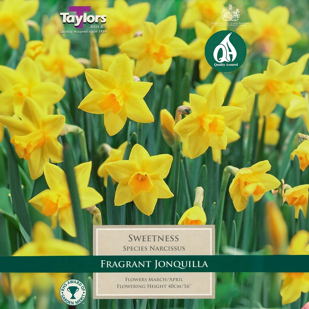 Suffuse your garden with the sweet allure of Narcissus 'Sweetness'. As its name suggests, 'Sweetness' graces any space with striking golden-yellow blooms that are not only a feast for the eyes but also for the senses, thanks to their delightful fragrance. Blossoming in early to mid-spring, they stand tall with their trumpet-like centres, offering a vivid contrast to the softer shades of spring. Their compact nature makes them perfect for pots and containers, while they also excel when planted in drifts amidst other spring flowers. Combine with pale blue forget-me-nots or white tulips to achieve a harmonious symphony of spring colours. And as a bonus? These flowers are an absolute favourite for bees, inviting a lively buzz to your garden.