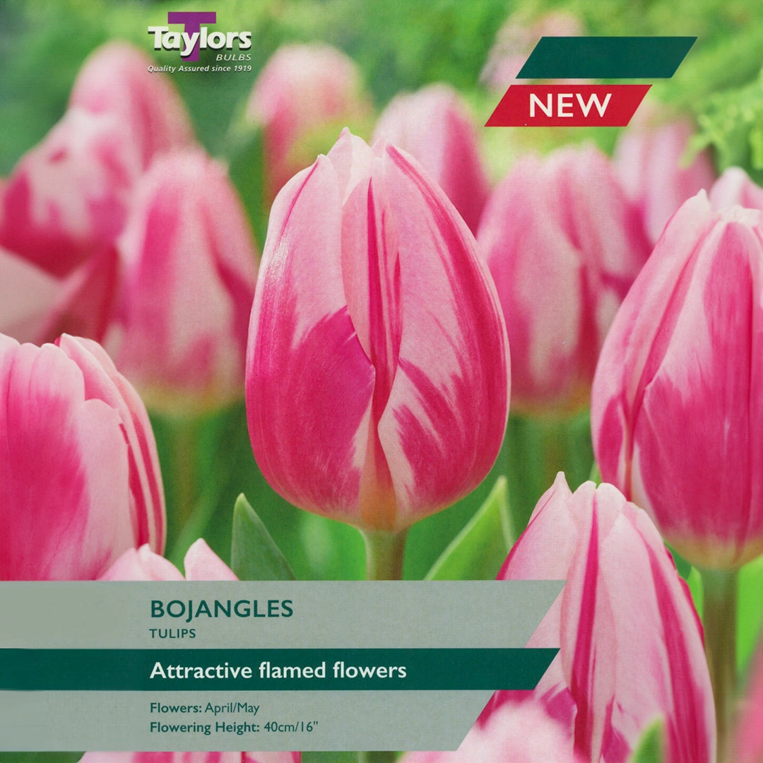 Step into a spring dream with the variegated pink blooms of Tulip 'Bojangles'. Each petal paints a canvas of soft pink hues, gently transitioning from one shade to another, creating a visual masterpiece. As they burst into life in mid-spring, these tulips become the embodiment of romance and elegance. Whether nestled amidst contrasting foliage in garden beds or standing tall in pots, their gentle allure is undeniable. Moreover, their delicate beauty lends itself perfectly to bouquets, allowing you to bring a touch of outdoor charm into your home.
