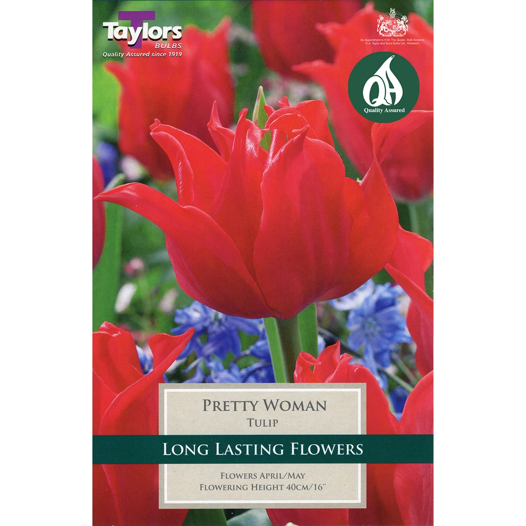 Blooming in mid to late spring, ‘Pretty Woman’ is perfect for planting in borders, beds, and containers. Its tall and elegant form adds height and drama to garden displays, while the striking red flowers provide a bold contrast against green foliage. This tulip thrives in full sun to partial shade and prefers well-drained soil, making it an easy and reliable choice for UK gardens. Whether planted en masse for a dramatic effect or mixed with other spring bulbs, ‘Pretty Woman’ is sure to make a lasting impression in any garden setting.