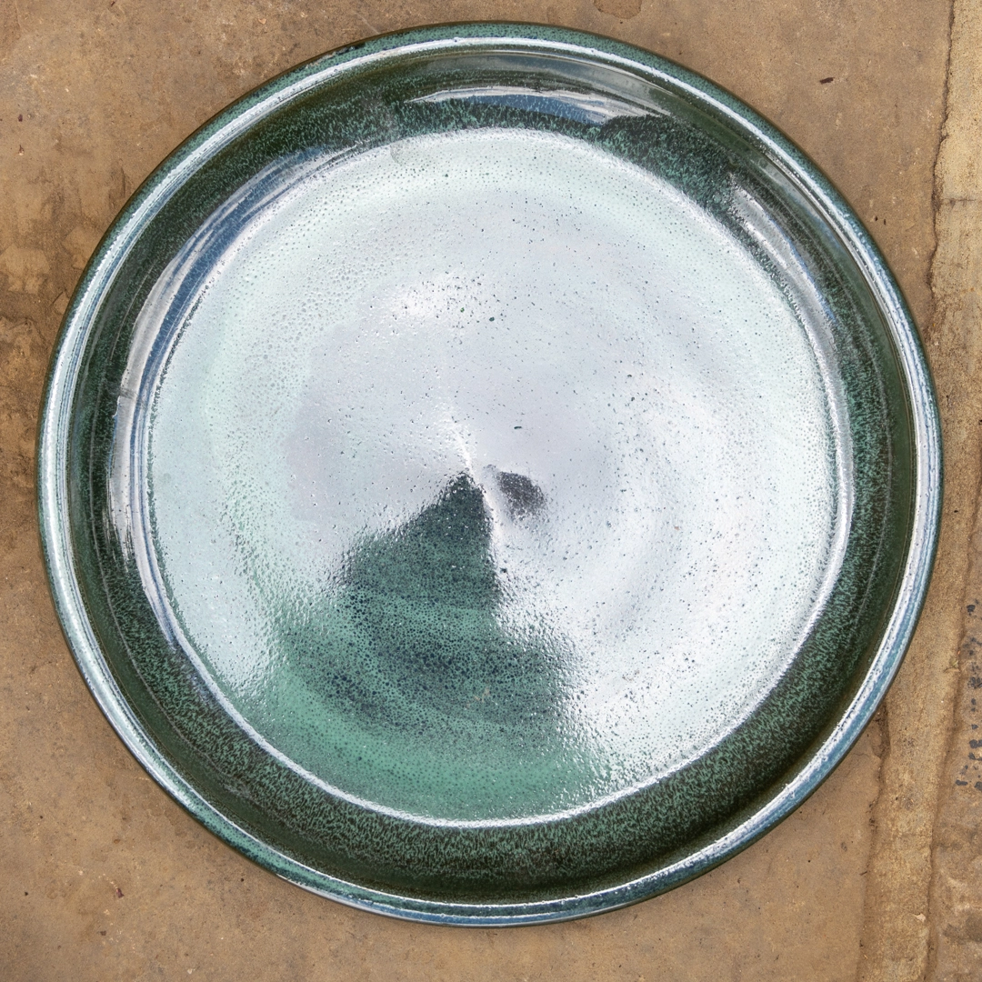 Glazed Terracotta Large Saucer Moss Green (D45cm) Handmade Plant Pot Saucer