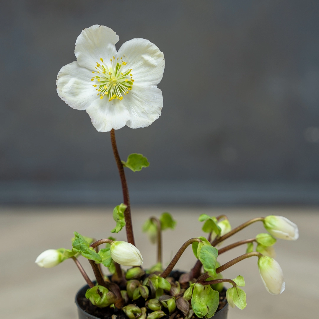 Helleborus niger ‘Verboom Beauty’, commonly known as the Christmas Rose, is a compact, evergreen perennial renowned for its profusion of pure white, saucer-shaped flowers that bloom from late November through early spring. Bred specifically to flower in time for Christmas, ‘Verboom Beauty’ can be enjoyed indoors during the festive season and later transplanted into the garden for continued enjoyment. Its dark green, leathery foliage forms a neat clump, providing year-round interest. This versatile plant is perfect for shaded borders, woodland gardens, or patio containers. When displayed indoors, it makes a stunning table decoration; once flowering has finished, it can be acclimatised to outdoor conditions and planted in moist, fertile soil in partial shade. Pair ‘Verboom Beauty’ with early spring bulbs like snowdrops or contrasting foliage plants such as ferns to create a captivating winter display.