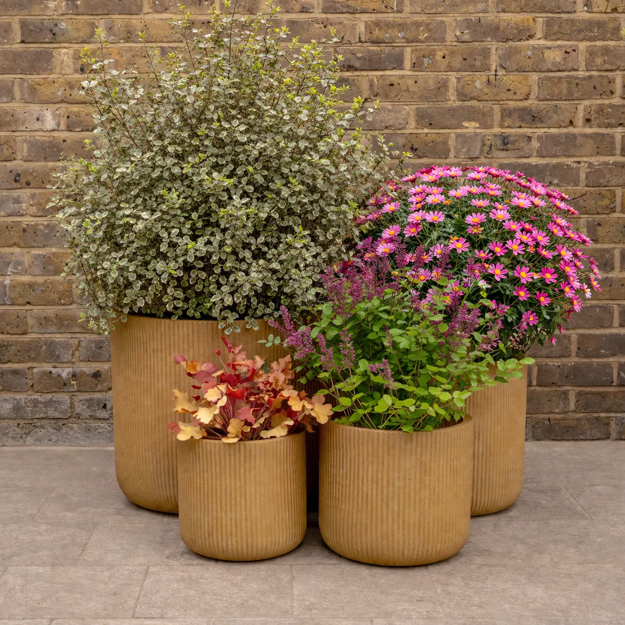 The Nuovo Plant Pot is a refined, contemporary garden planter designed for modern London outdoor spaces. With its clean cylindrical shape and subtle vertical ribbed texture, this outdoor plant pot brings structure and calm to patios, terraces, and courtyard gardens.