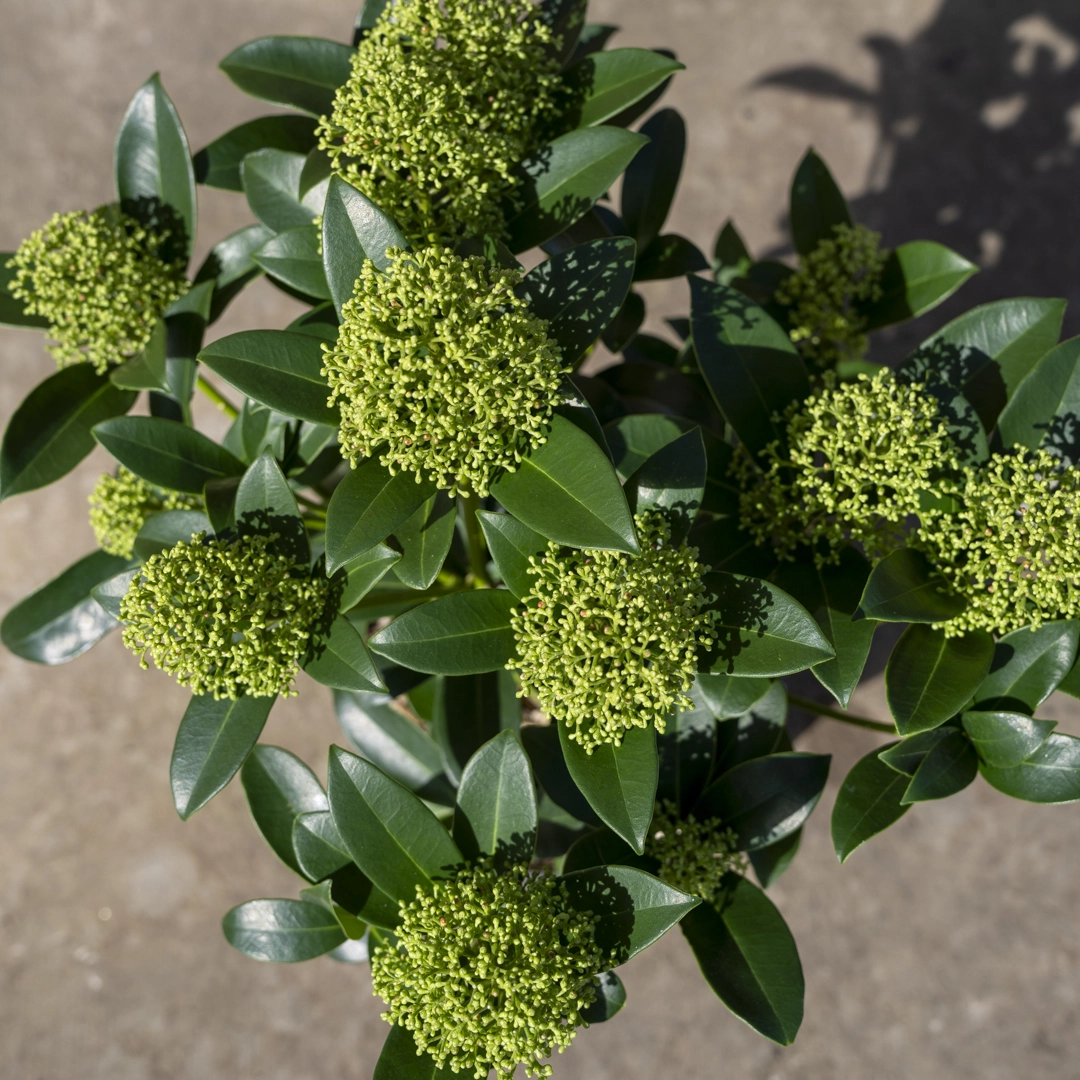 - Use Ericaceous feed to keep the Skimmia healthy and green