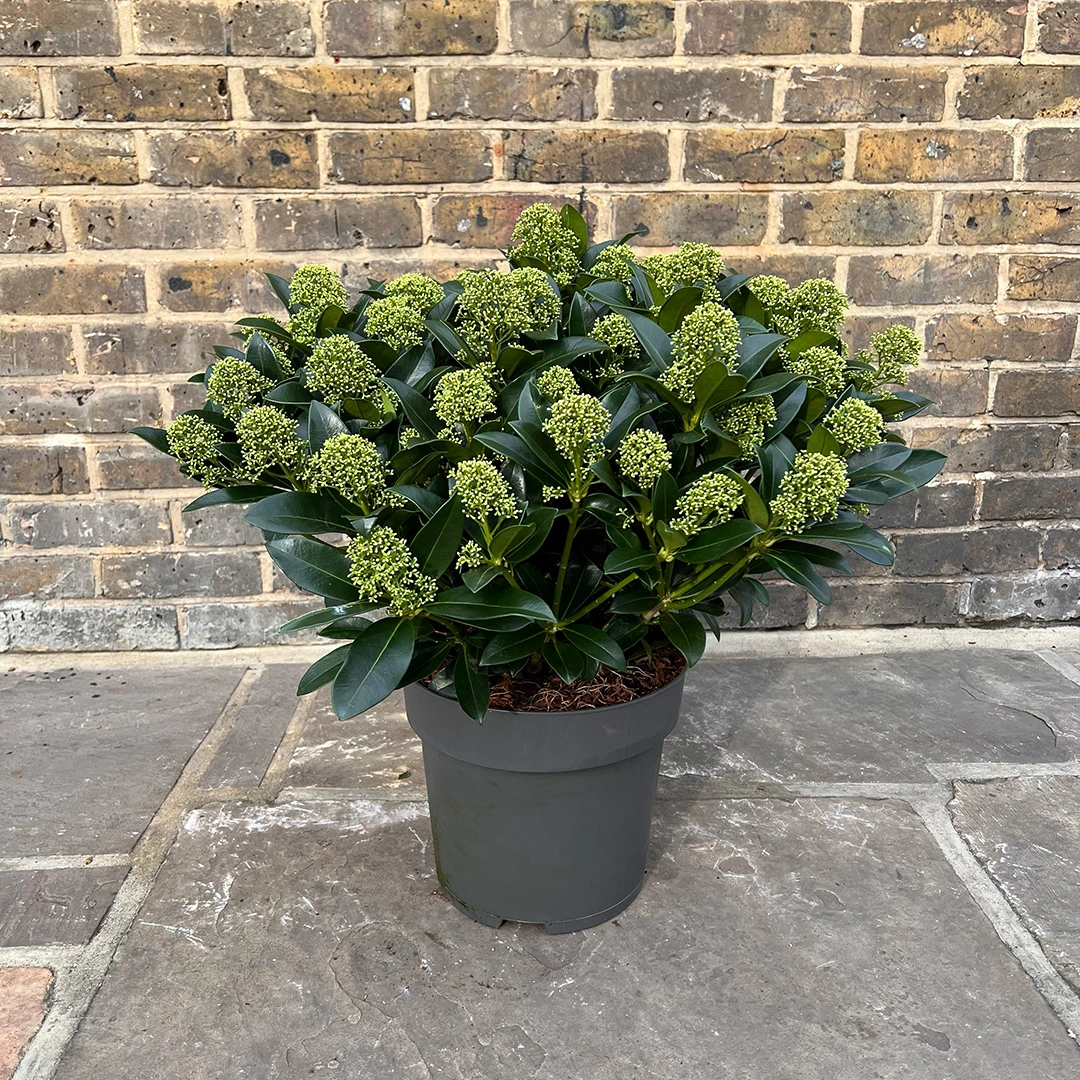 Buy Skimmia japonica 'White Globe' (L) at The Boma Garden Centre in Kentish Town, London. Visit our garden centre in London and check our wide range of plants & gardening products. We also offer many other products in our webshop. We look forward to seeing you soon!
