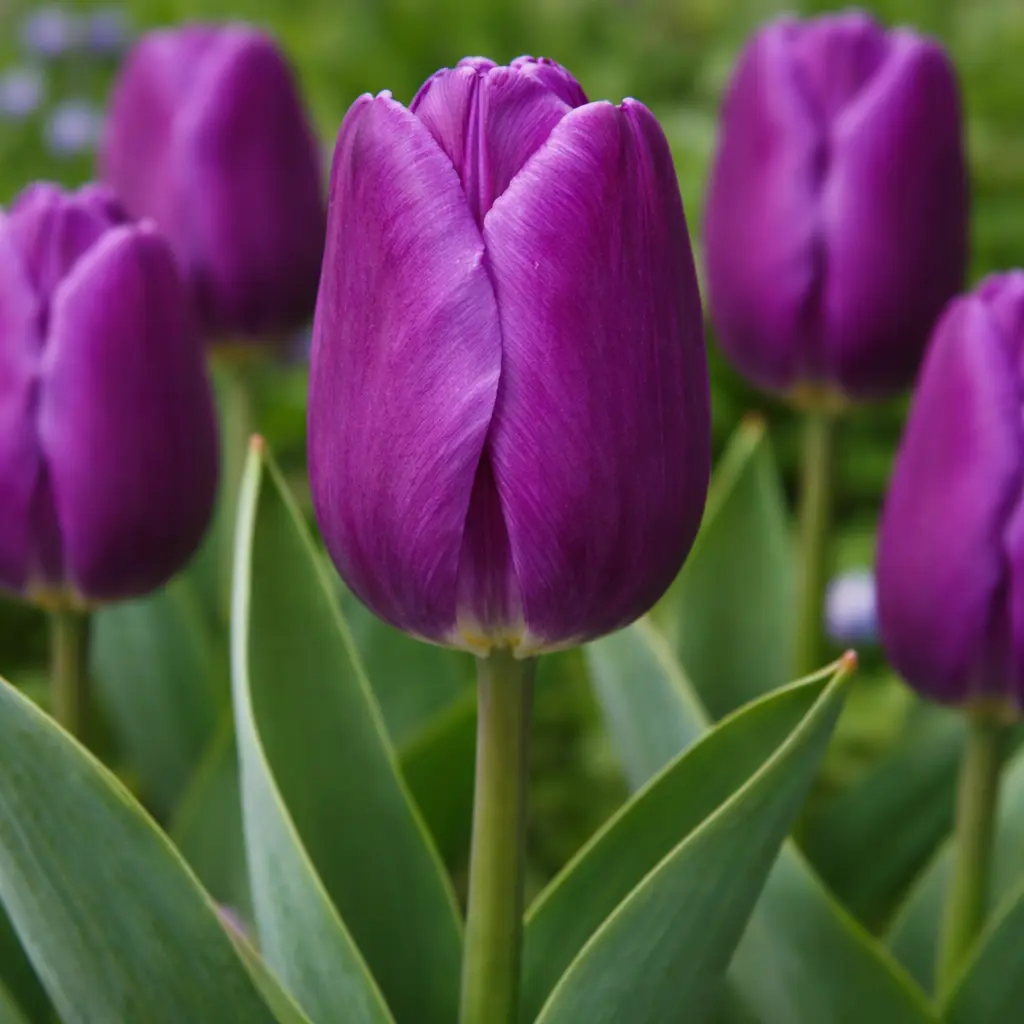Tulip ‘Purple Flag’ is a striking and confident spring tulip, valued for its intense purple colouring and classic, well-balanced form. The blooms are a deep, saturated violet-purple, creating a dramatic presence that instantly anchors spring planting schemes. Their strong stems and neat flower shape ensure they remain upright and attractive throughout the flowering period.