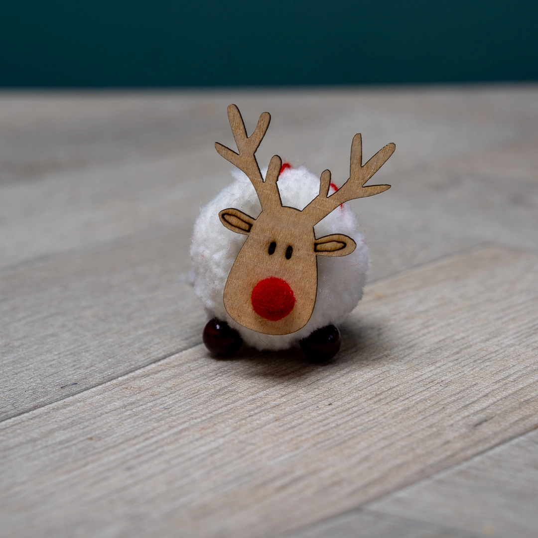 Wool & Wood Round Raindeer Hand-made Christmas Tree Decoration D4cm (1.5Inch)